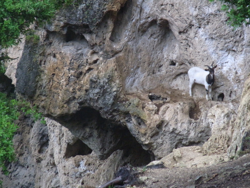There wasn't much shelter on the way down. The only dry place was a bit of a rock-overhang and that was already occupied by two mountain goats...