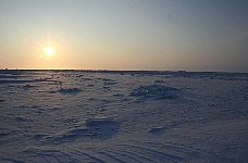Since the third camp was next to a little hill, snow had been blown over the hill and deposited on the ground, so (unlike on the open sea) there was a thick layer of soft snow at the site, so some trampling around with snowshoes was needed to prepare the place for the tents.