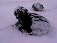 It had obviously snowed overnight and the dogs were trying out their "Holstein cow look", which suited most of them better than the red overcoats.
