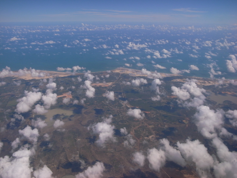 Next day I took a flight from Fortaleza to São Luís (to continue from there to Barreirinhas). I had a window seat and the weather was reasonably nice, so I managed to get some good views of the Lençóis Maranhenses National Park from the plane. (I did see the park from a plane about three months earlier, but from a somewhat lower altitude. Pictures from that sightseeing flight are here.)