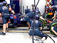 During the pit walk on Saturday, more 'assembled' cars were on display. Most teams did 'pit stop practice', where they put a mechanic into the car, had two or three other mechanics push the car and then practiced the tire changes (and sometime the replacement of the cars noses).
