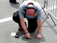 When leaving the pit lane (the race time was getting closer and the pit lane was to be closed to spectators) there was another low-tech oddity. There are probably temperature sensors all over the track, but there was still someone kneeling on the asphalt to take the current track temperature.