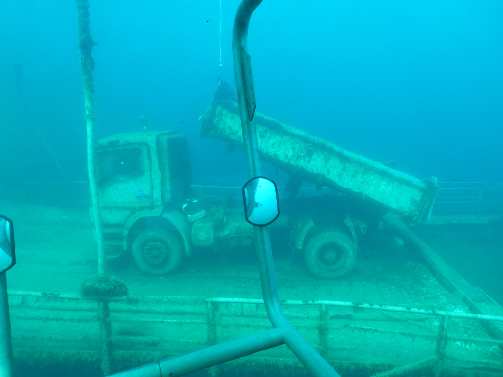 The truck was put on the bridge after the lake was flooded, so it was a tricky operation to get it into the proper position - mostly with air filled lifting bags, rope extensions and careful manoeuvring.