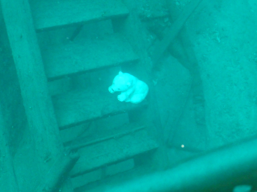 A bit further on was one of the old (presumably scratched by a dirty towel) plexiglass domes from the submarine that divers could use as a small air bubble.
