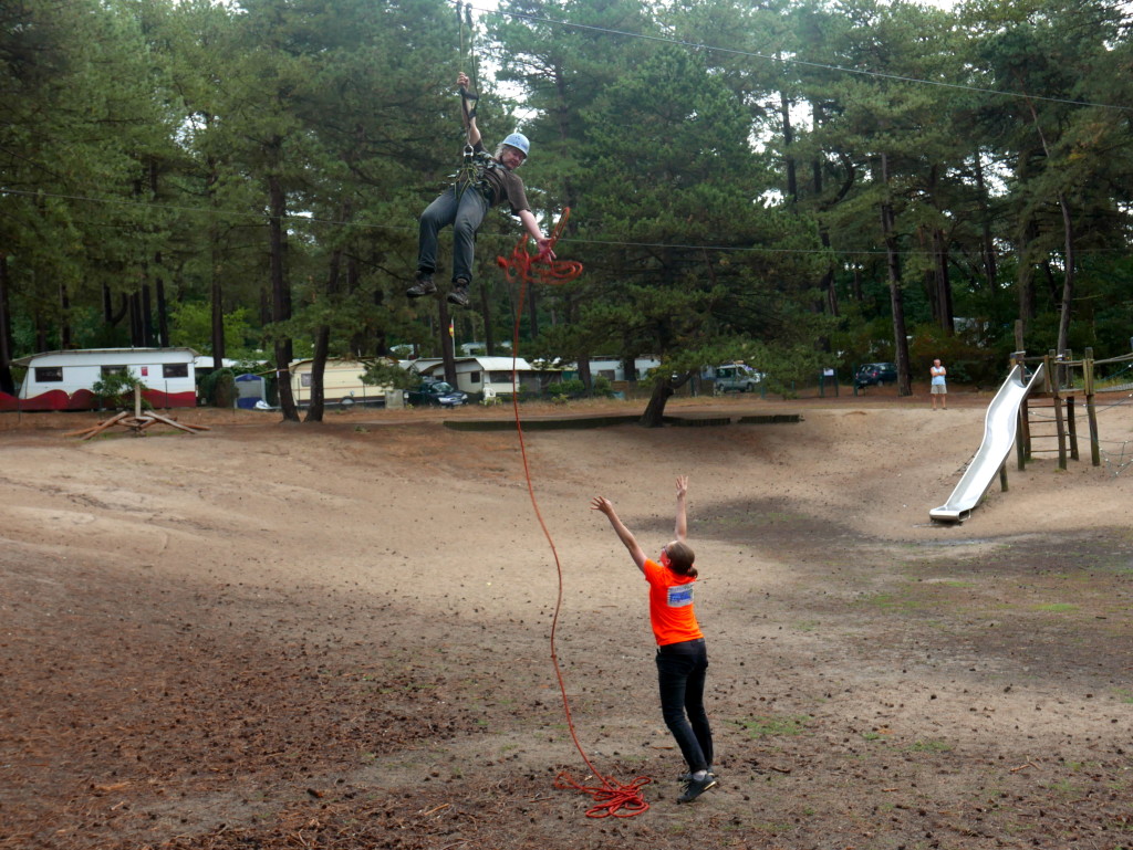 Most of the ziplines are 'within' the grounds of the climbing park, but two longer ones take you across a public playground back again.