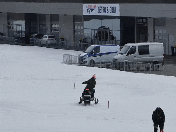In retrospect, it would have been better to go for a Buggy ride (as some other people did later). If you drive in an environment that needs drifting, it's a good idea to use a vehicle that drifts better than a snowmobile.