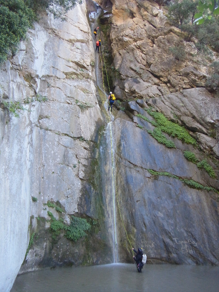 The company doing the canyoning mainly do multi-day tours, visiting another canyon every day. And on the day that fitted my schedule, they were doing Rodokalos canyon, which is well suited for beginners, as it requires no previous experience, but still has a great scenery and interesting things to do (such as rappelling down waterfalls). Had my schedule been off by a day, they would be doing Goropotamos Canyon, which quite clearly is not suited for beginners. There's an 85 meter rappel next to a waterfall and it also includes a number of jumps, with the highest being 18 meters, neither of which seems like a good idea if you haven't done anything remotely like it.