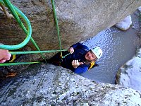 One of the areas where 'not having a clue' helped. One of the guys on the canyoning trip was a mountaineer, but hadn't done any canyoning - and he was quite irritated about having the end of the rope being open. One of the basic rules of mountaineering is that you always make a knot into the end of an abseiling rope. Always. It's sort of drilled into mountaineers, so to him, it was like telling a driver to put oil on the brakes of a car - it's just something you don't do. Since I didn't know anything about either canyoning or mountaineering, I wasn't bother about that at all. (Technically, the reason is that in canyoning you usually have a 'flat' area at the bottom, so you can adjust the length of the rope accordingly, while in mountaineering, one steep bit is usually followed by the next, so you don't want the rope to suddenly run out. And if you are at the bottom of a waterfall and get somehow under water or the rope gets trapped, you don't really want to start to unclip things - it's much easier to just pull the rope out and be free. So it all makes sense - it's just that all his experience told him never to do this.)