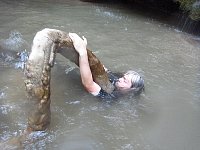 We followed a small stream upstream (walking, not rafting) and arrived at a nice waterfall for some after-rafting shower and a couple of photographs.