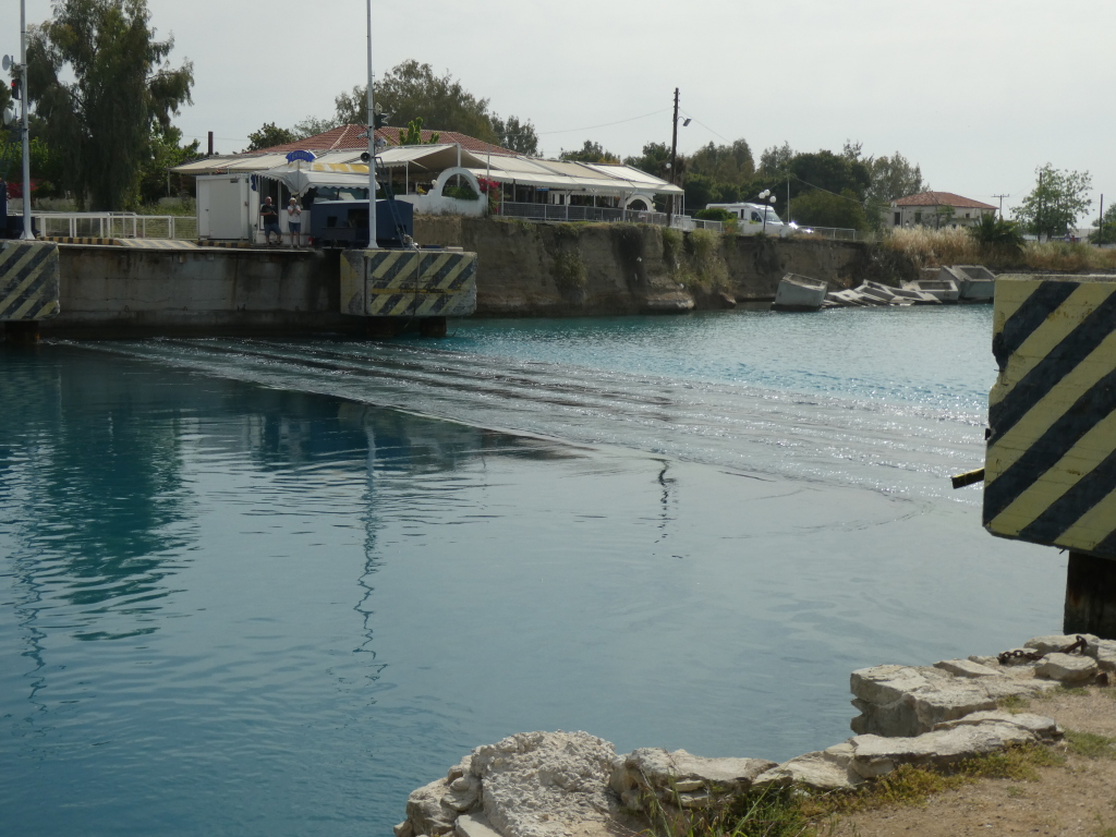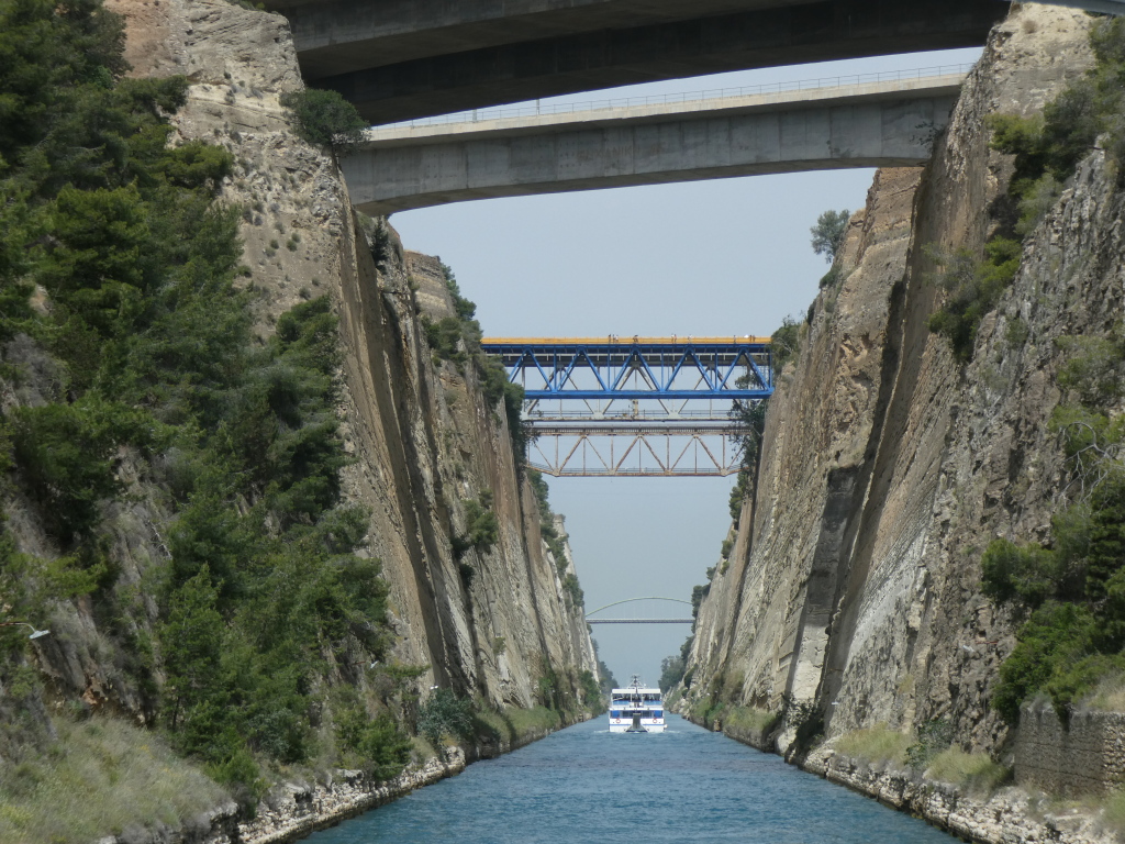 Since there's not much to do in the area (which was why I selected the place), I decided to do a boat tour up and down the Corinth Canal. It's a small canal, which, in theory, provides a shortcut for ships, so that they can avoid a detour around the Peloponnese.