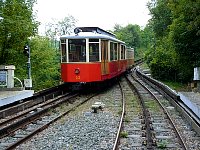Unlike the train in Torino, which drives up the hill on its own power, the 'train' here is pulled up by a cable.