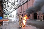 (Interestingly, nobody reacts to such oddities. It was the first time that the stunt workshop took place at that site (a former factory building) and some parts of that area are used by other companies. So while we were doing the fire stunt, a minivan came by to drive to some other part of the area. So someone stopped the van, the person wearing the suit was set on fire and crossed the driveway, and the minivan could continue. Having a burning man cross the street in front of the van caused about as much a reaction as if we had carried some furniture across...)