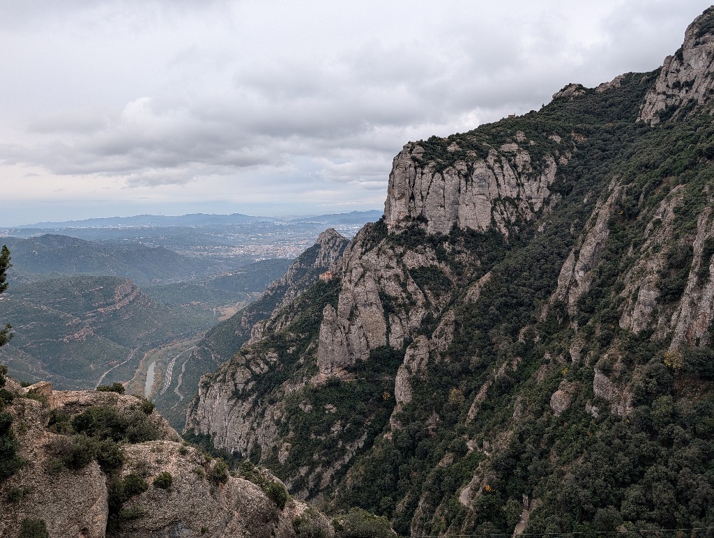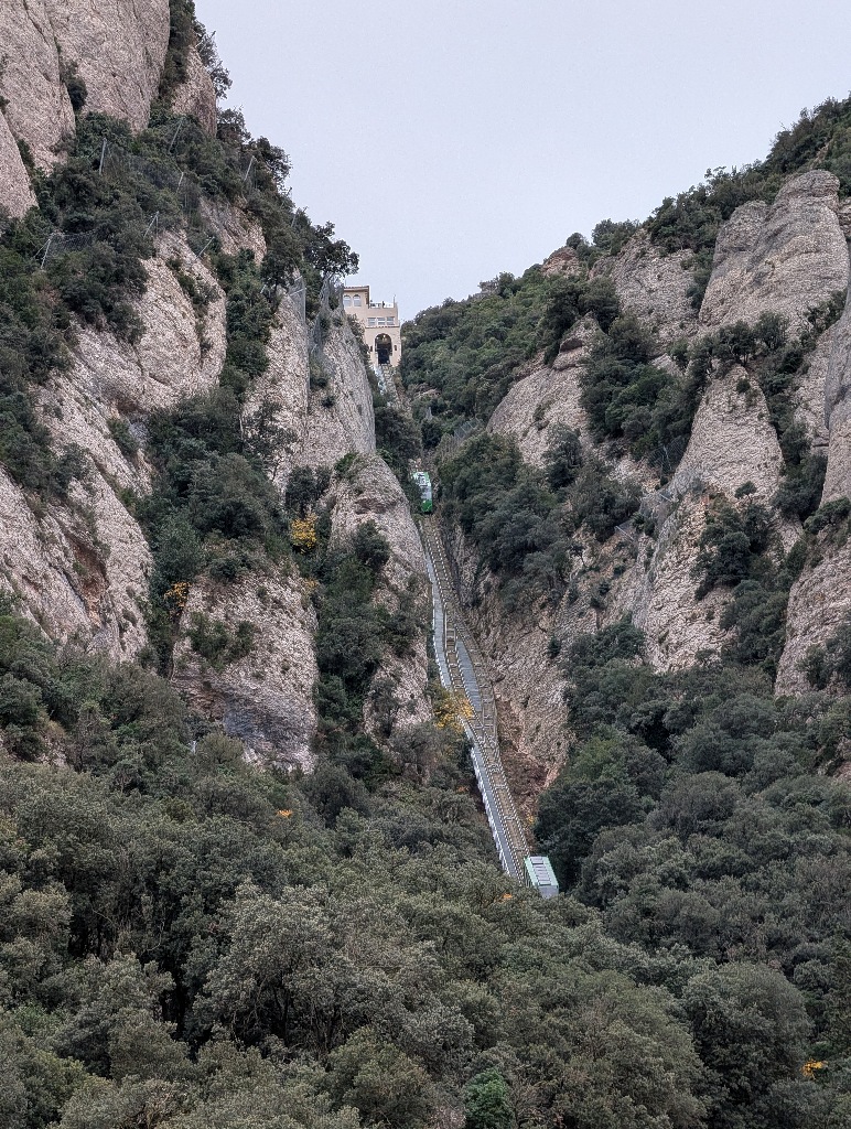 I wasn't interested in the abbey itself. But next to the abbey is one end of a funicular. And that takes you higher up the mountain. From there a number of paths go back to the abbey (and other places).