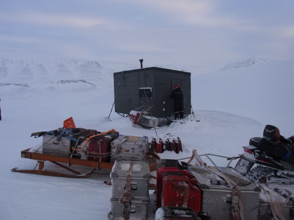 A quick stop at the old trappers cabin Fredheim and another stop at the remains of an old light signal that helped dog sleds to find their way across Sassendalen and it was time to head back for the hut.