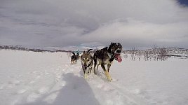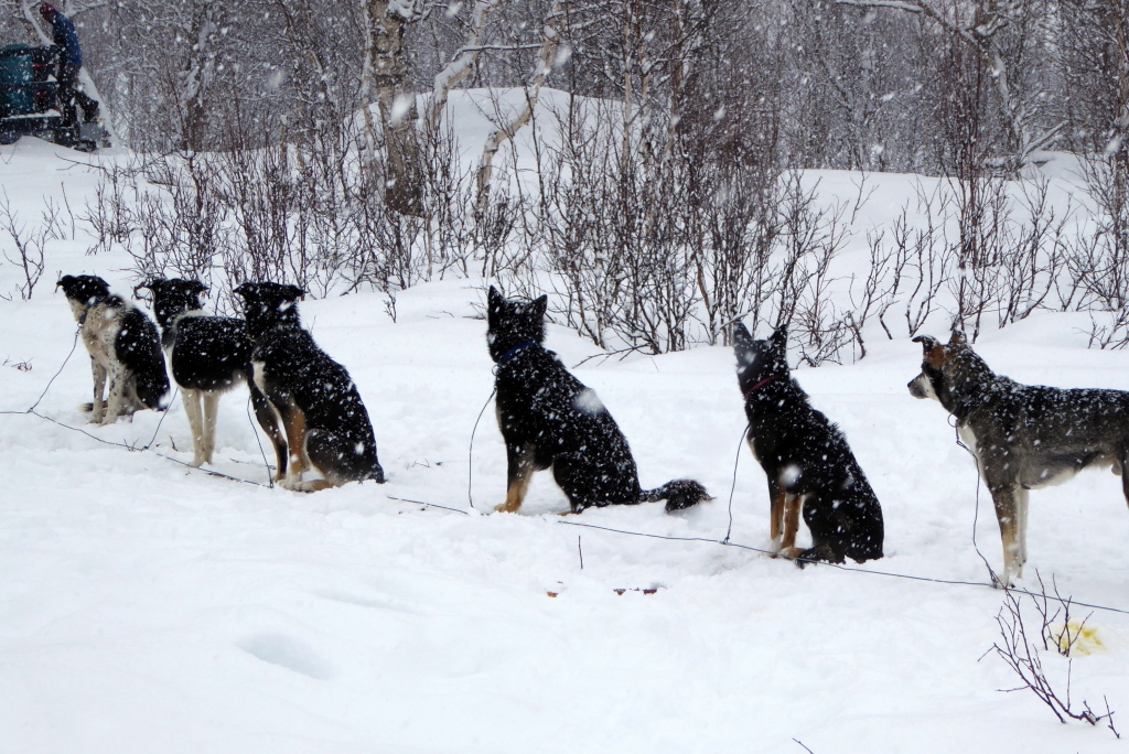 Most of the time, dogs tend to get quite excited when it's time to go, jumping up and down, pulling and barking. Especially at the start of the trip, when they are well rested and even more eager to get running again.