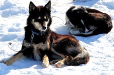 There were some changes during the trip. Prana was my lead dog for the first two days, but then got worn out (from leading, not from running) and was replaced by Saga (from 'Team Constanze', which frustrated Constanze a bit, since Saga was her lead dog and she was quite happy with her).