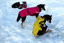 The dogs in their teams decided to say hello to each other and started to mingle. All nice and friendly - no dog fights or anything - but it took a considerable amount of time to get all the lines and harnesses separated again.