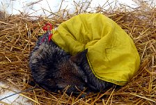 Which is, oddly enough, something they don't really need when it is seriously cold. (Though they appreciate dog jackets when this happens.) The straw is used more when it is too warm and the snow is soft and wet. It is more protection from wetness than from the cold.