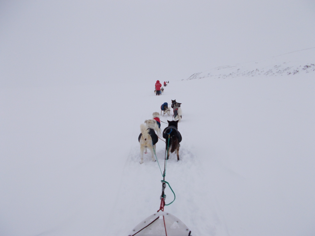 The thing I noticed at first was a kind of sideward ripple going through the dog teams in front of the sleds ahead of me (I was riding in third position again).