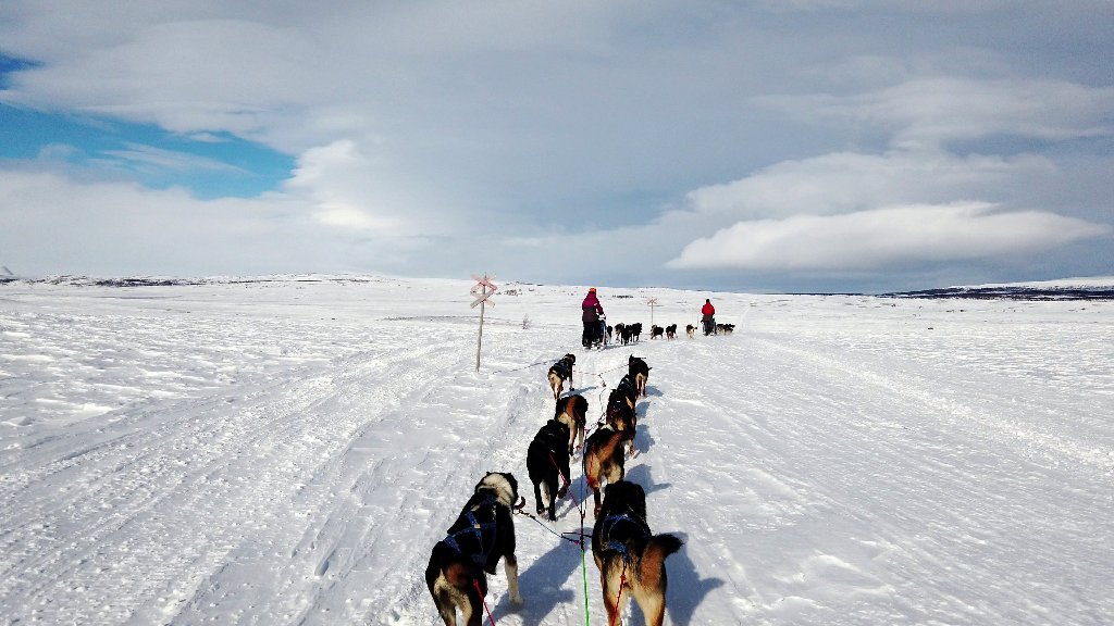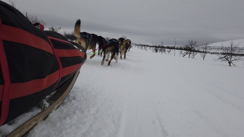 When you are dogsledding, you usually do that in a line. So almost all pictures that you take of other people or that other people take of you will show you directly from the front or from the back.