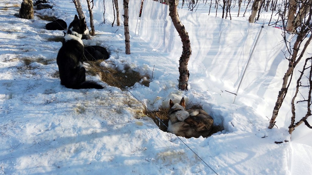 The arrival at the cabin went without any issues and soon the dogs were in (or at least near) their dog boxes.