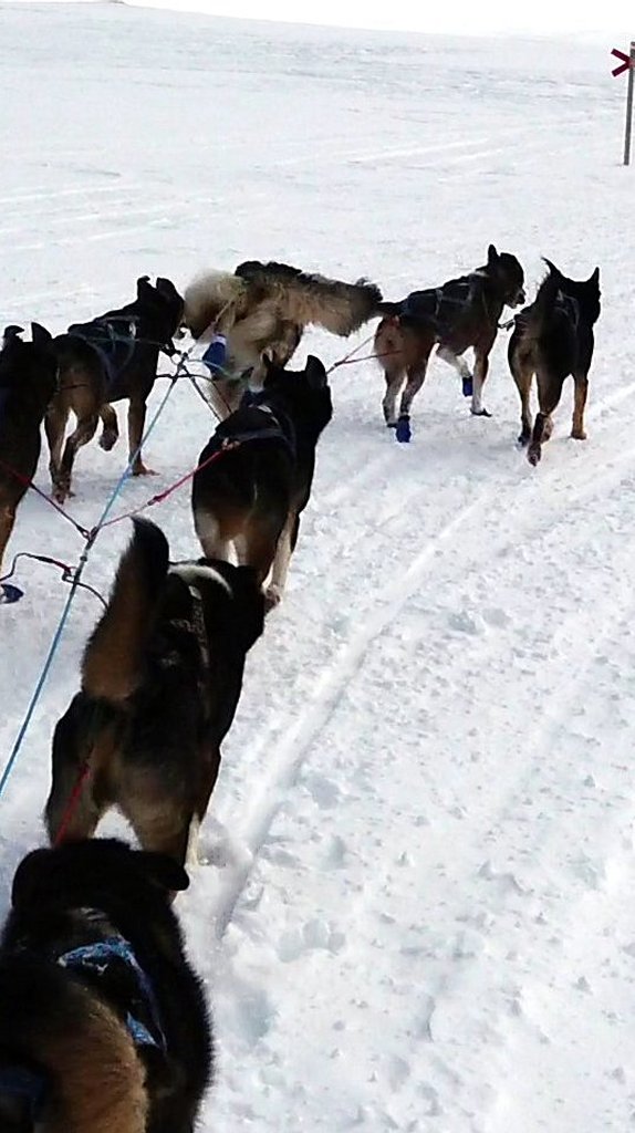 Ten dogs were indeed a lot of help on the uphill parts and on the mountain plateau. For once, I didn't have the slowest team.