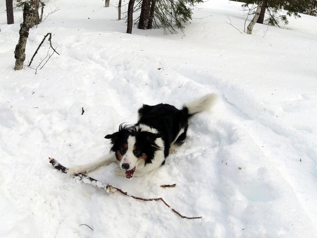 And Annie isn't able to teach us 'throw the stick', even though she properly goes through all the steps used in animal training. Like observing the behavior and giving positive feedback every time an action is performed that even rudimentary leads into the right direction. Every time she drops a stick and someone takes a step closer to the stick, she is really excited and wags her tail. She's really doing anything she can to teach us about throwing the stick.