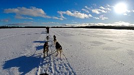 If I hadn't done tours with Matti before, I would have assumed that part of the reason for the strangely winding route had also been a safety consideration. The lunch place was only about 4 km from the starting point and most of it was across lakes, so if any problems had developed on the first morning, we could have quickly returned to the kennel. Or Stina could have reached us with a snowmobile in a couple of minutes.