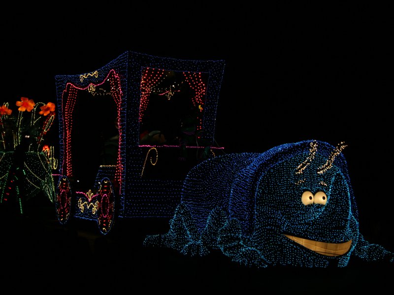 While Disney Sea is the more modern and more interesting environment (and I spent most of the day there), I also wanted to visit Disneyland. I have been to the incarnations in Anaheim, Orlando and Paris, so I wanted to have the 'full set'. Unfortunately (or, more accurately, by fiendish design), there is no ticket that allows you to visit both parks on the same day for a reduced price. While there are 'two parks' tickets, they only allow you to go on consecutive days, forcing you to spend two or more days (which I didn't have) in the parks. The only alternative to full price tickets is using the reduced 'after 6 pm' ticket, that allows entry in the evening for a reduced price. So I spent most of the day at Disney Sea, then did a short detour to the Tokyo Sea Life Park (which is just one train station away) and went to Disneyland at six. Since the sun sets rather early in Tokyo, even in summer (around 7 pm), I didn't get to take many pictures of the park, but I managed to get a few nice nighttime shots of a show, the electrical parade and the fireworks. I also didn't manage to visit many attraction, but I did manage to visit "Phantom Manor / Haunted Mansion", so I have seen at least this attraction in all existing variations.